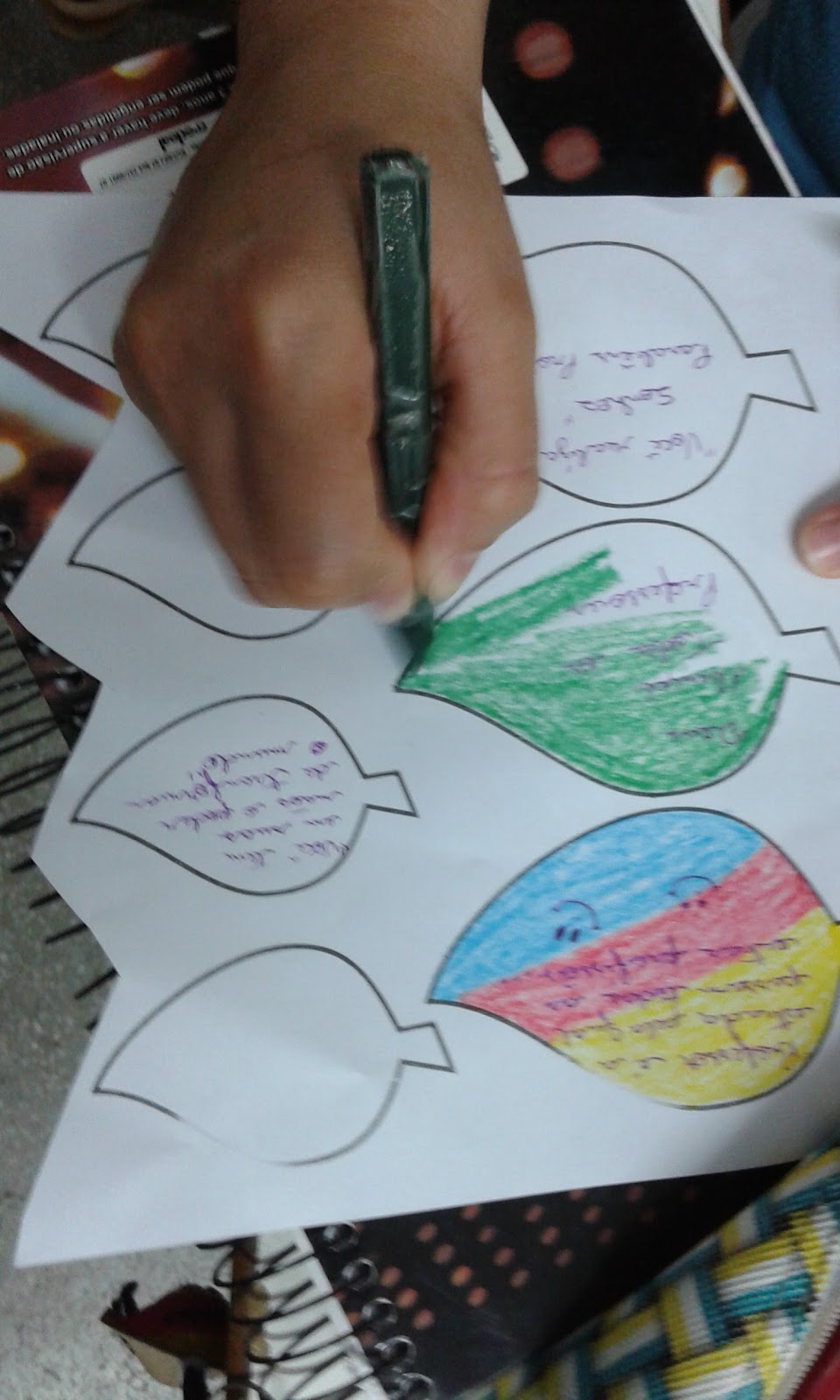 Levei para a aula 4 cartazes, 3 contendo a ilustração de árvores secas com um lápis escrevendo a palavra 'educação' e um com o poema "Ser Professor. Meus colegas receberam folhas em branco e foram convidados a transformar as ilustrações dos cartazes atribuindo um novo significado. Os cartazes foram expostos fora da sala de aula, mas antes disso, fizemos uma avaliação ponderando a construção colaborativa dessa homenagem.
