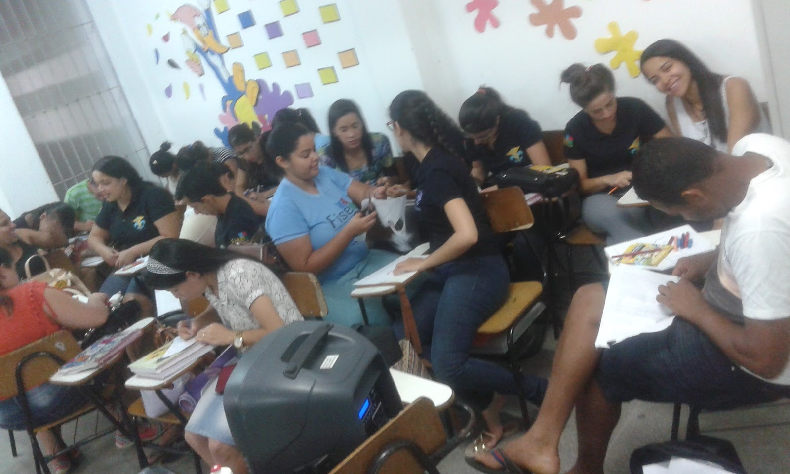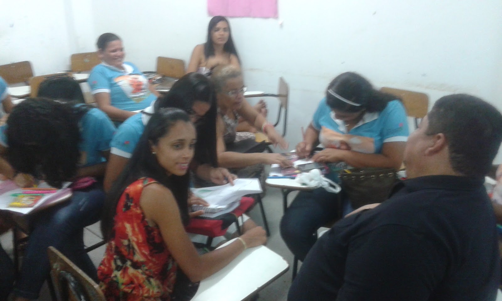 Iniciamos o trabalho assistindo um vídeo bem humorado com o personagem Pateta da Disney. O título "Professor também é gente". Descontraímos rindo com os exageros das situações expostas no vídeo. Em seguida, foi exibido o vídeo com o poema "Ser Professor", que ajudou a promover momentos de reflexão.